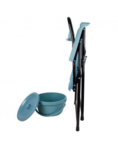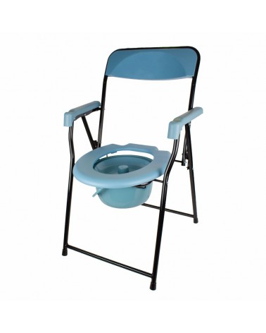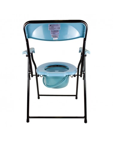 Esta silla con inodoro cuenta con unas conteras antideslizantes que ofrecen una mayor seguridad, y con un respaldo amoldado a la forma del cuerpo en color azul para una mayor comodidad.