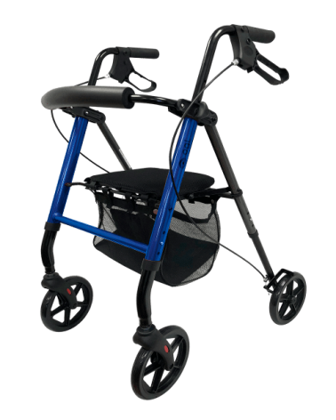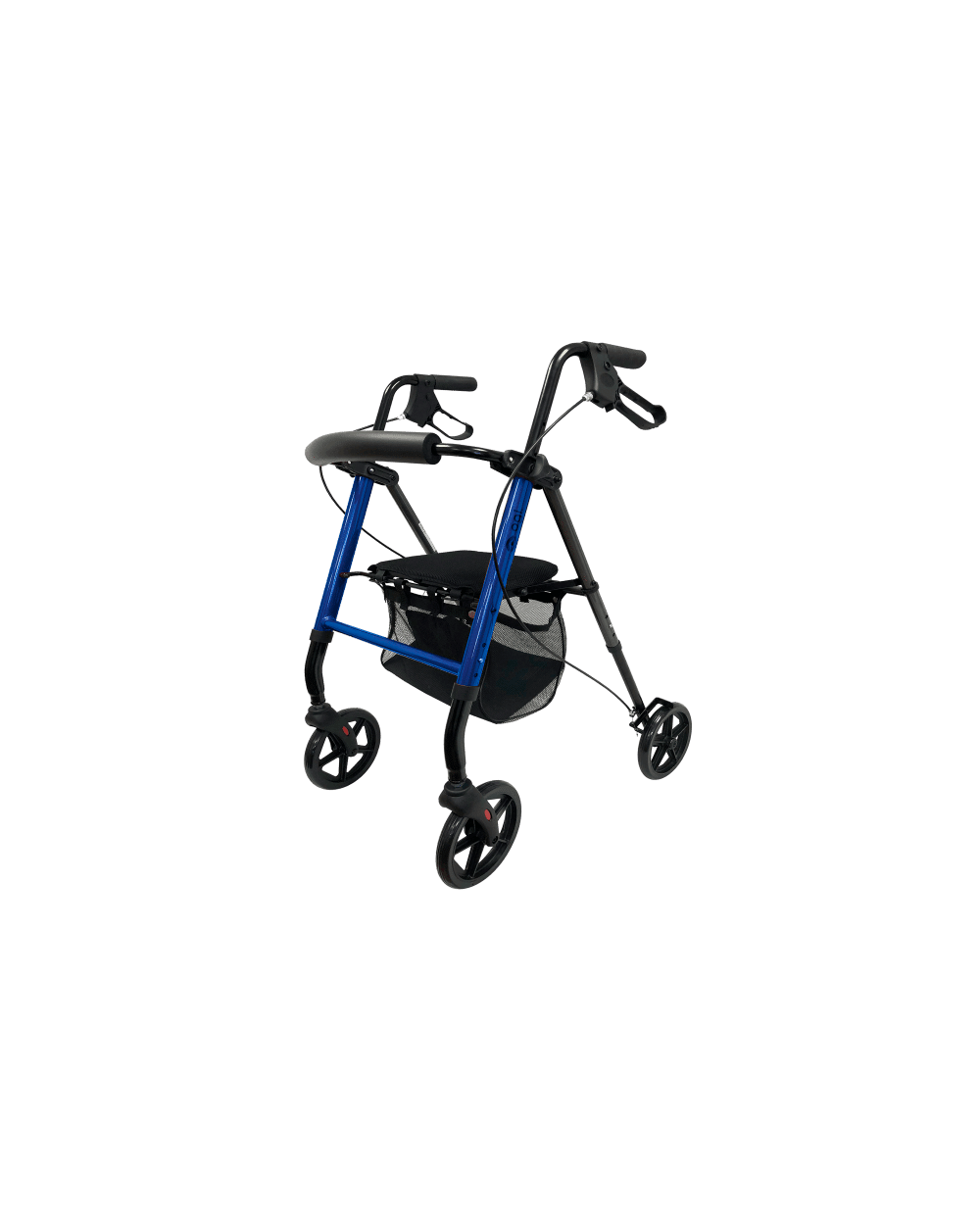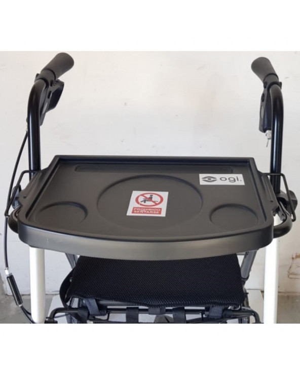 Andador de cuatro ruedas: dos ruedas delanteras giratorias de 8 pulgadas (a diferencia del resto de andadores de OGI con ruedas de 6 pulgadas) y ruedas traseras con freno de mano.